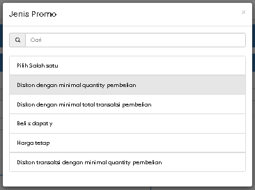 - Pilih jenis promo, ada beberapa jenis promo yang disediakan ada di gambar berikut :