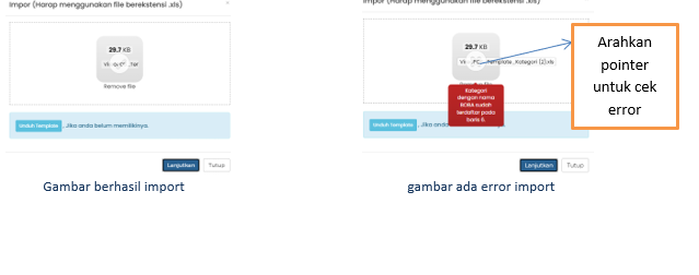 Jika tidak sesuai akan ada keterangan error saat masukan file