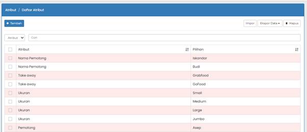 Gambar list atribut
