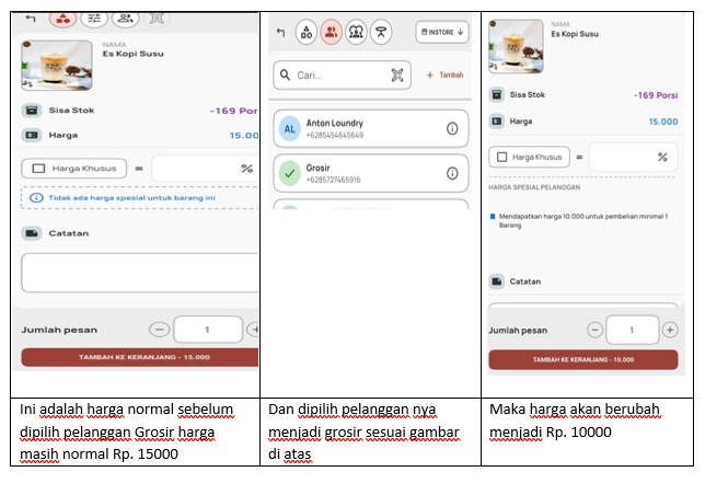 - Jika kasir tidak memilih pelanggan grosir, maka sistem akan menggunakan harga eceran (harga normal).