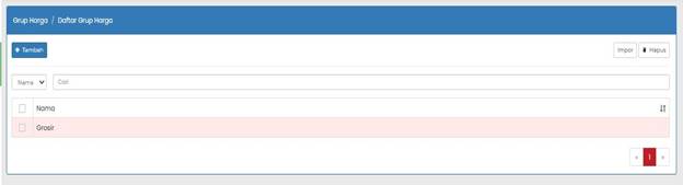 Digunakan untuk menambahkan grup harga secara massal melalui file impor. - Hapus